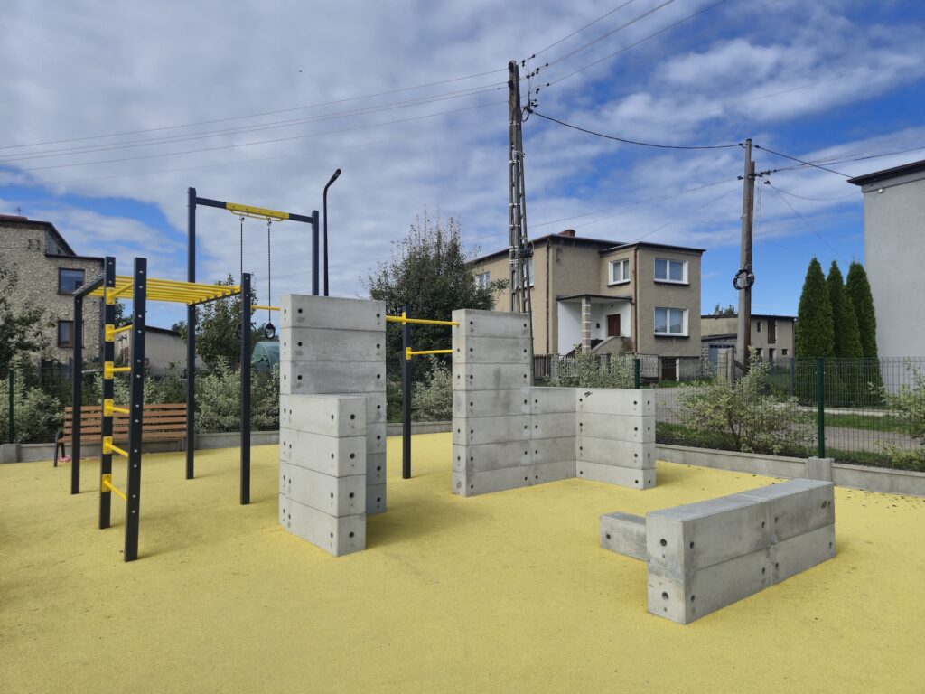 Plac zabaw w Porębie (dzielnica Tarnowskich Gór) zrealizowano w sąsiedztwie zabudowy jednorodzinnej. Na ogrodzonym terenie znalazło się również miejsce dla siłowni oraz niewielkiego flowparku z syntetycznym, elastycznym podłożem. Kształt jednego z elementów wyposażenia placu sugeruje, że jest to prawdopodobnie boulodrom. Jednak rodzaj nawierzchni (luźny, drobny grys) raczej nie będzie ułatwiał życia potencjalnym graczom.