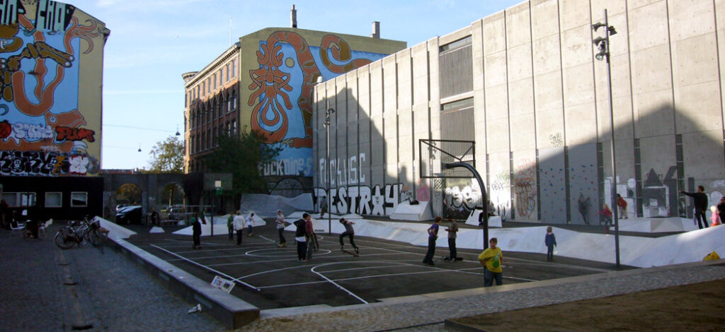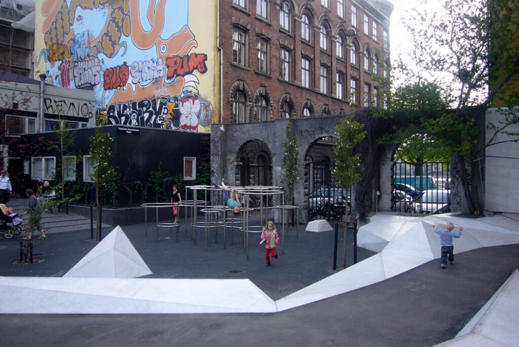 Położony w śródmieściu Kopenhagi (Dania) plac był kiedyś częścią zajezdni tramwajowej i autobusowej z połowy lat 90 XIX w. Współcześnie to fragment przejścia pomiędzy parkiem Ørsteds a tzw. „Krainą Jezior”, któremu w roku 2008 nadano nowe znaczenie. Do przestrzeni pomiędzy kamienicami, centrum kultury (w byłym budynku zajezdni) i stacją trafo wprowadzono skatepark, boisko do koszykówki, ścianę do boulderingu, mały plac zabaw i zieleń. A plac nie stracił nic ze swojej dotychczasowej funkcji, czyli przejścia.