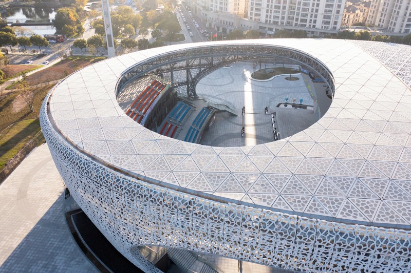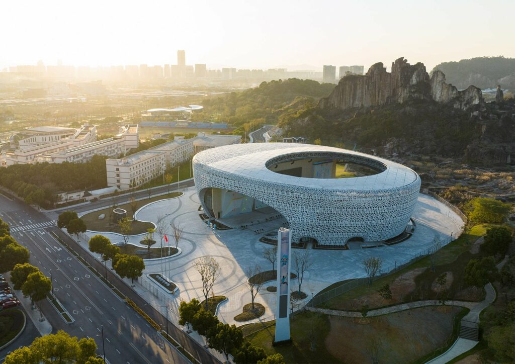Centrum wspinaczkowe powstało na terenie byłego kamieniołomu, na obrzeżach Shaoxing w prowincji Zhejiang (Chiny). Początki wydobycia kamienia w okolicy dzisiejszego Shaoxing sięgają okresu państwa Yue, około V w. p.n.e. Setki lat eksploatacji dobiegły końca, a w latach 60 XX w. na część terenu zasadzono morwę i hodowano jedwabniki. W latach 90 hodowle porzucono, a na początku XXI w. na części kompleksu kamieniołomów utworzono Yangshan Quarry Heritage Park. Zrealizowane w sąsiedztwie chronionego obszaru Centrum sąsiaduje z drugiej strony z drogą, zabudową mieszkaniową i szkołą. Na powierzchni ponad 8000 m² znajdujemy wewnętrzne i zewnętrzne ściany do wspinania z liną i boulderingu, liczne pomieszczenia oraz widownię na ponad 2000 miejsc. Półotwarta bryła nawiązuje kształtem do kokonu jedwabnika, co w zamyśle autorów ma przypominać o historycznym dziedzictwie rejonu Hangzhou, związanym z przemysłem jedwabniczym. Obiekt powstał jako część infrastruktury sportowej Hangzhou Asian Games2022.